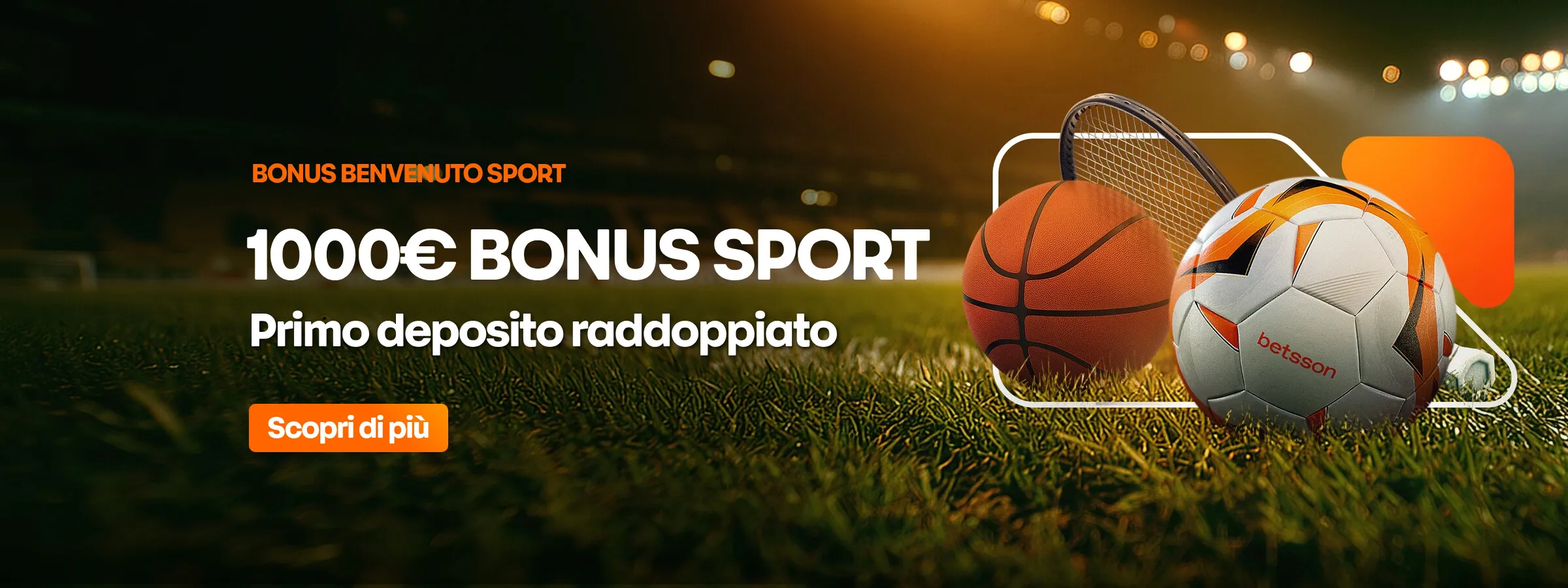 Benvenuti su Betsson! Finalmente anche in Italia puoi divertirti con le scommesse sportive e il casino online di Betsson. Con oltre 60 anni di esperienza nei giochi e nell’intrattenimento, anche nel mondo dello sport, una valida reputazione riconosciuta a livello internazionale e numerosi premi ottenuti alle kermesse del settore, a Betsson sappiamo come soddisfare le esigenze dei nostri clienti offrendo quote competitive e tantissime opzioni di gioco in ogni sezione del nostro sito web, comprese quelle relative all’universo dello sport. Inoltre, su Betsson siamo sempre al tuo fianco fornendoti un ambiente sicuro per le transazioni e un’assistenza immediata per ogni necessità che ti riguarda.